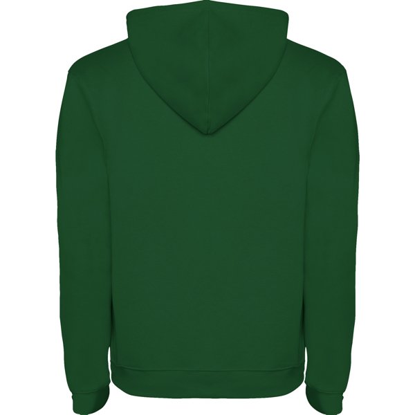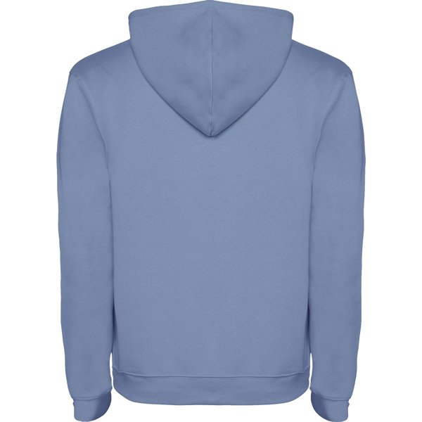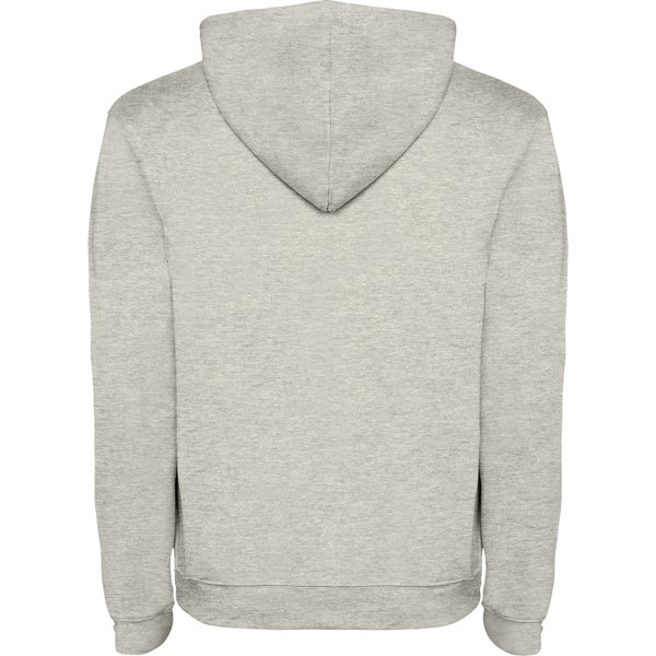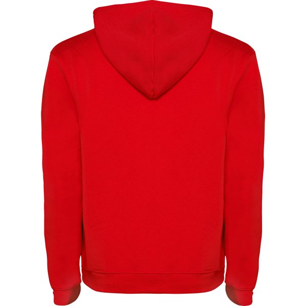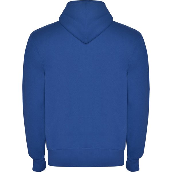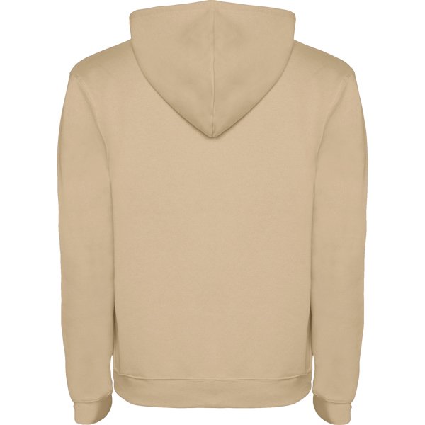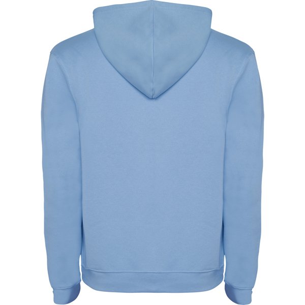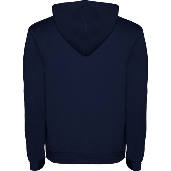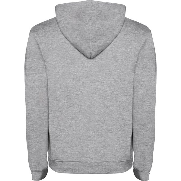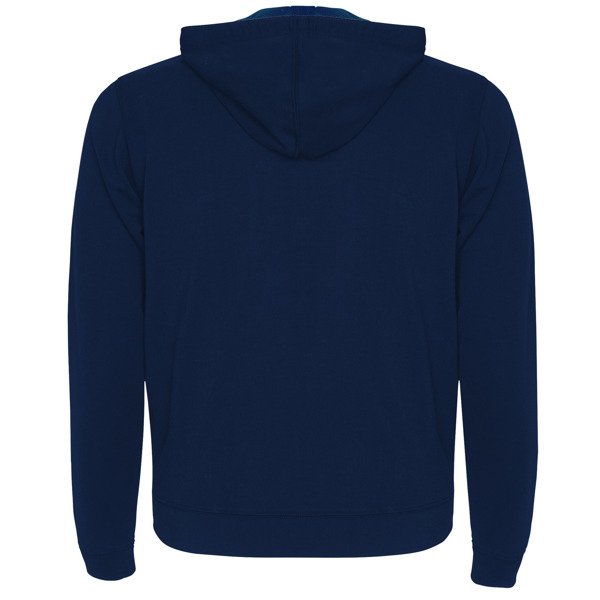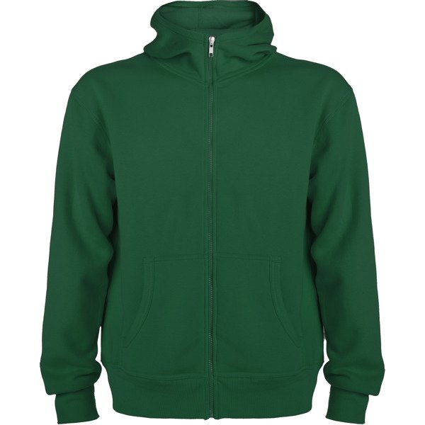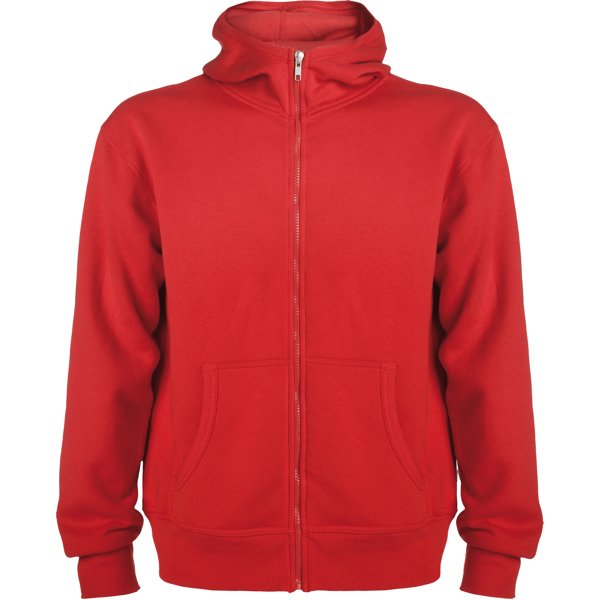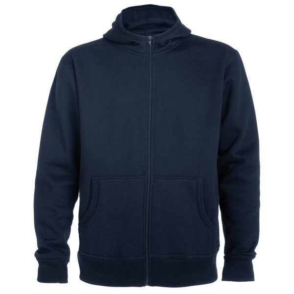 - Sudadera unisex con cremallera frontal y capucha. Cremallera al tono. Bolsillos canguro, contorno capucha, puños y cinturilla en canalé 2×1 con elastano. Cubrecosturas del mismo tejido.