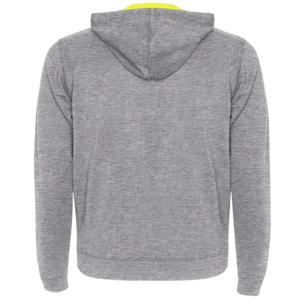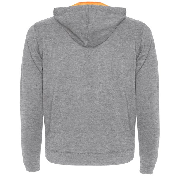 - Sudadera con cremallera frontal y capucha no perchada. Capucha forrada con rejilla de poliéster. Cordones planos de poliéster. Puños y cinturilla en canalé 2×1 con elastano. Cubrecosturas del mismo tejido. Opciones de colores lisos y a contraste.